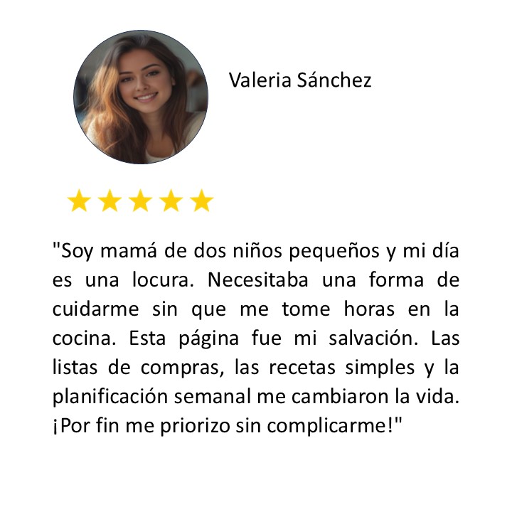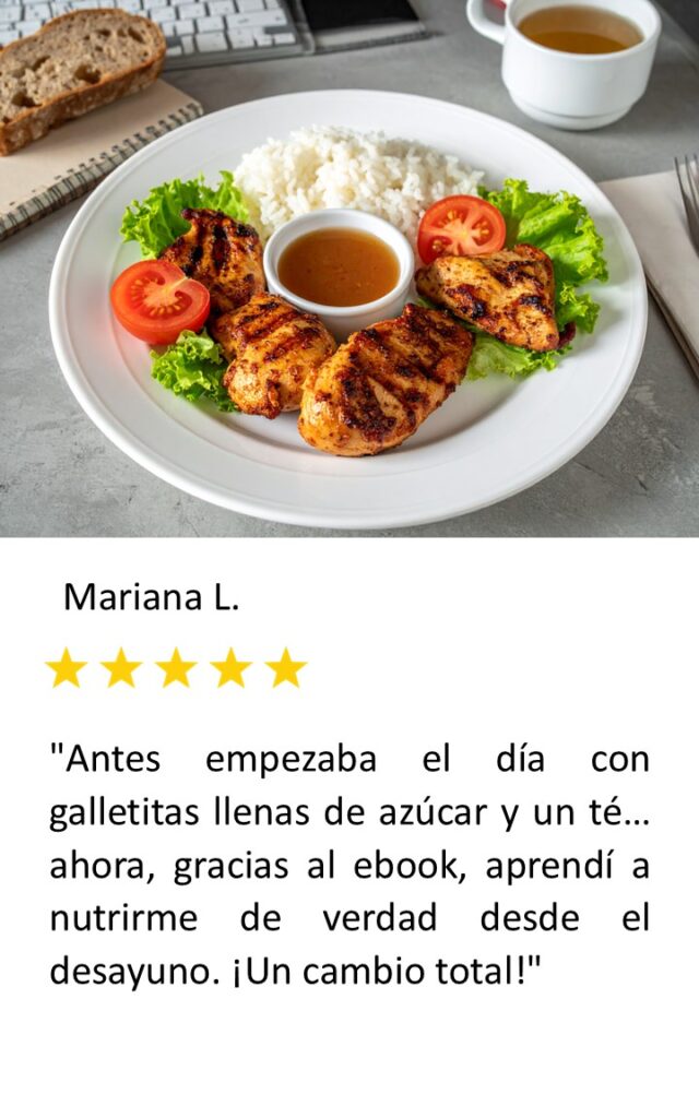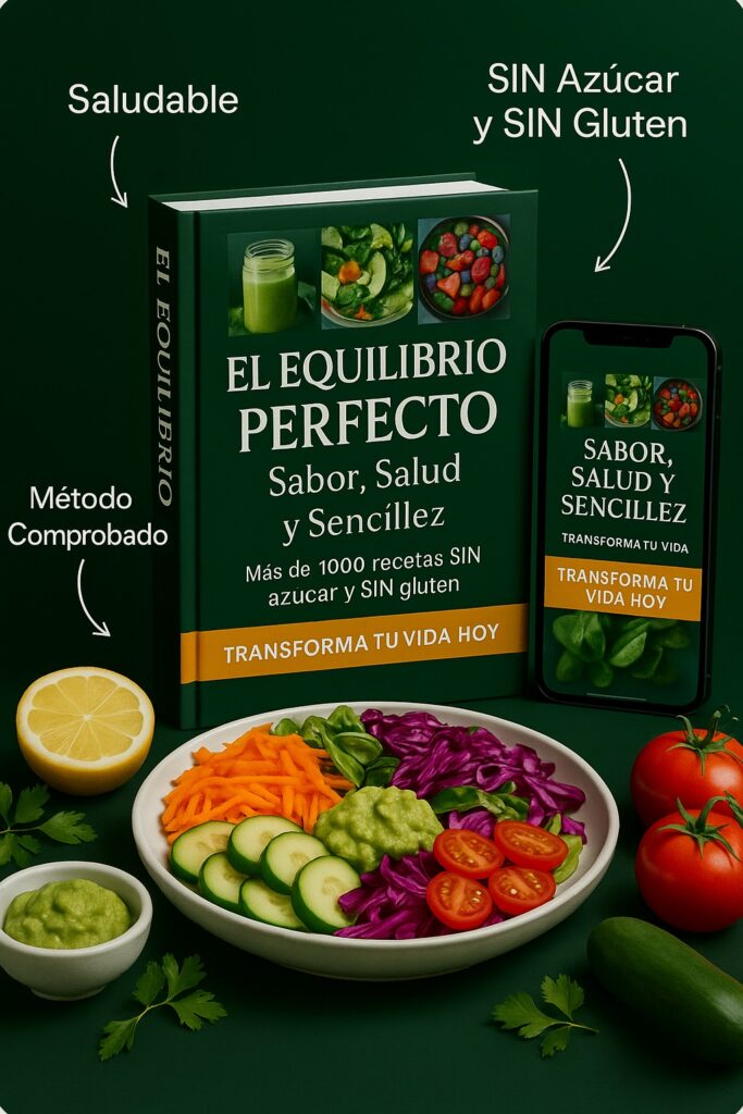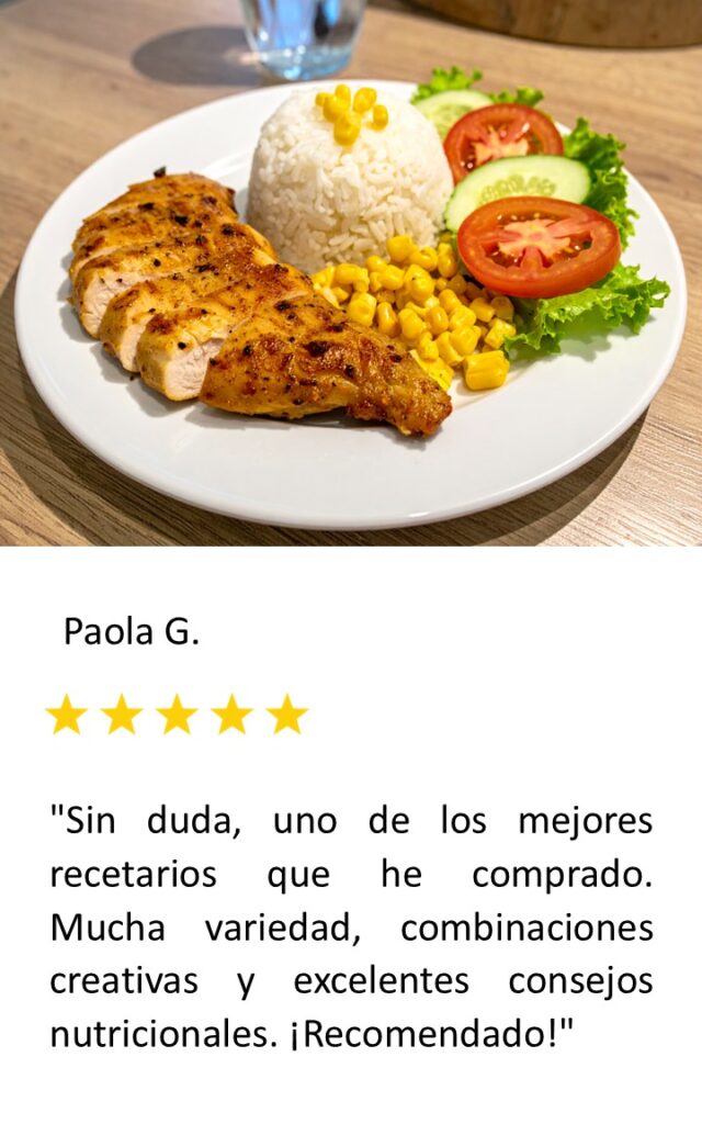 Recibirás un ebook en formato PDF de alta calidad. Además de las recetas, incluye planes de comidas semanales, listas de compras y una guía de inicio rápido para que puedas comenzar a transformar tu alimentación desde el primer día.